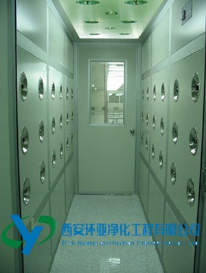 风淋室是人进入洁净室所必需的通道,它可以减少进出洁净室所带来的污染问题,减少由于人货进出带来的大量尘埃粒子由洁净室的入口处安装功能齐全的“气闸室”可以减少空气污染微粒的数量,当人货通过风淋室时,污染微粒被经过高效过滤的高度洁净空气射掉,25m/s以上的高风速确保了有效的喷射和飘移微粒经过初效和高效两级过滤器基本过滤掉。为了保持风淋的安全使用,维持洁净室环境的洁净度
